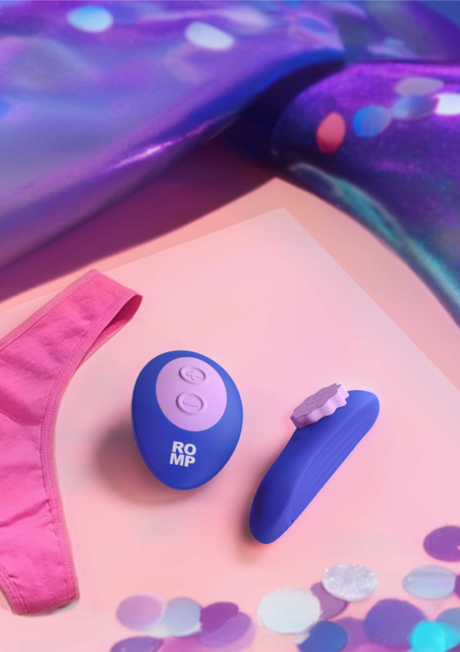 ROMP Party is a remote-controlled panty vibrator designed for on-the-go clitoral stimulation. With 7 intensity levels, this discreet treat easily snaps into place for kinky adventures in solo and partnered play. Discreet and quiet, the Party panty vibe sits comfortably in underwear for thrilling clitoral vibrations – whenever and wherever you like. One sneaky click on the remote, and you or your partner are vibing like the coolest cat in town, even in public. Body-safe silicone feels good on skin while the vibe is held in place with an unobtrusive magnetic clip for effortless wear. Dive into wet and wild fun with this IPX7 vibe, and just recharge it to keep the party going.