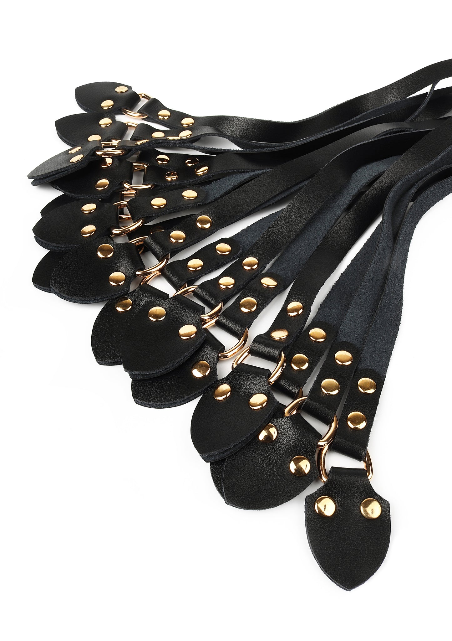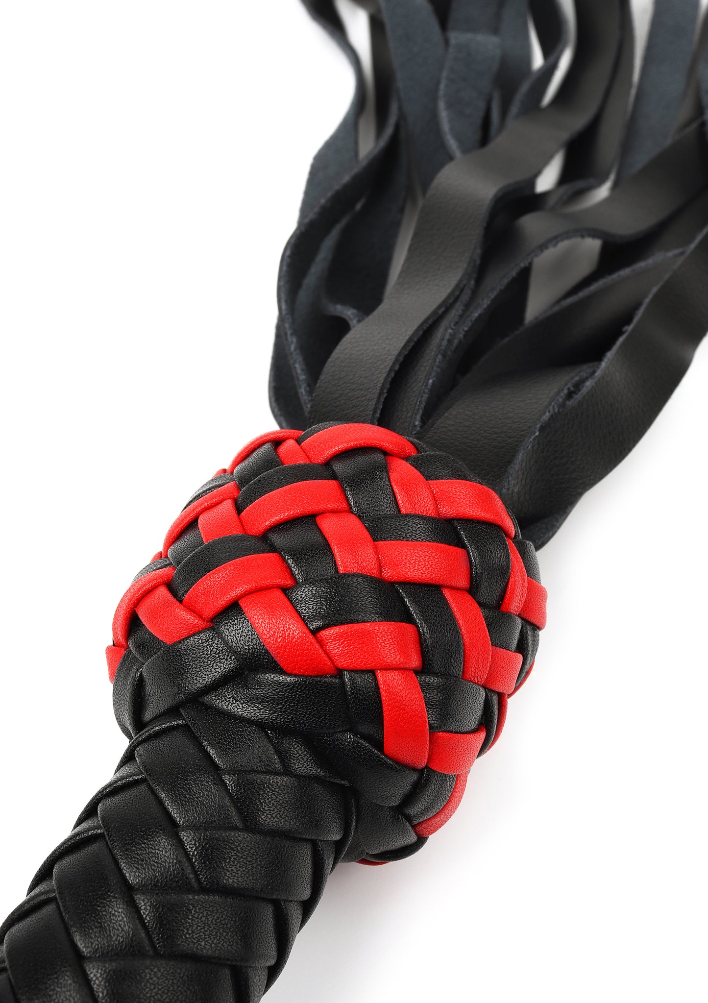 Embárcate en aventuras emocionantes con el Látigo Cat-o-Nine de Cuero Auténtico, ahora con colas con tachuelas para un impacto adicional. Diseñado con múltiples colas y fabricado en cuero premium, este látigo ofrece una combinación única de sonido, sensación e intensidad. Su mango trenzado con detalles rojos brinda un agarre seguro y una apariencia impactante, ideal para experiencias atrevidas.