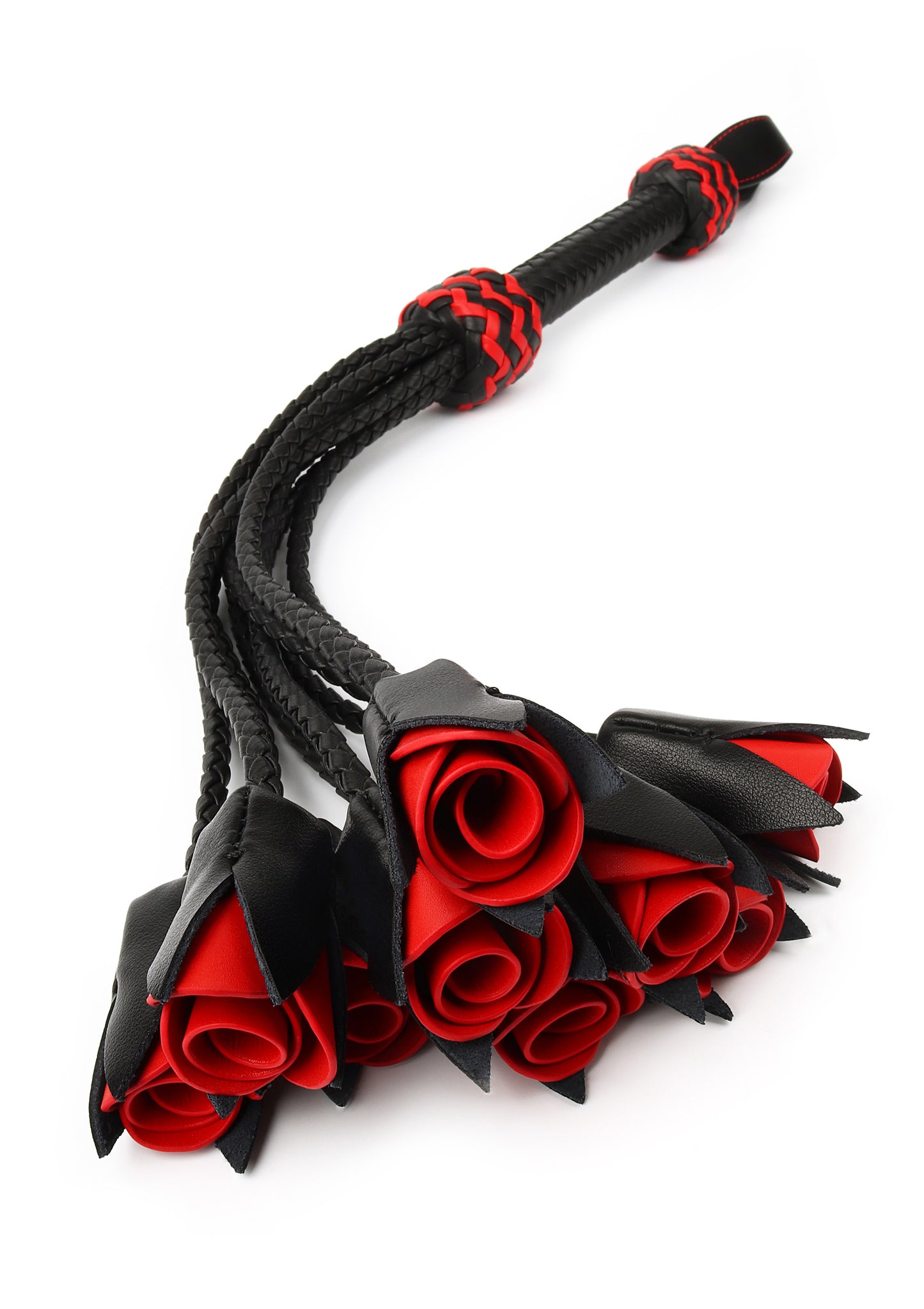 Abraza la elegancia con el Látigo de Rosas de Cuero Auténtico. Con colas en forma de rosas hechas de cuero premium, este látigo combina belleza y funcionalidad. Su mango trenzado con detalles rojos garantiza un agarre firme, mientras que las rosas suaves y flexibles brindan sensaciones suaves pero impactantes, perfectas para un juego sofisticado.