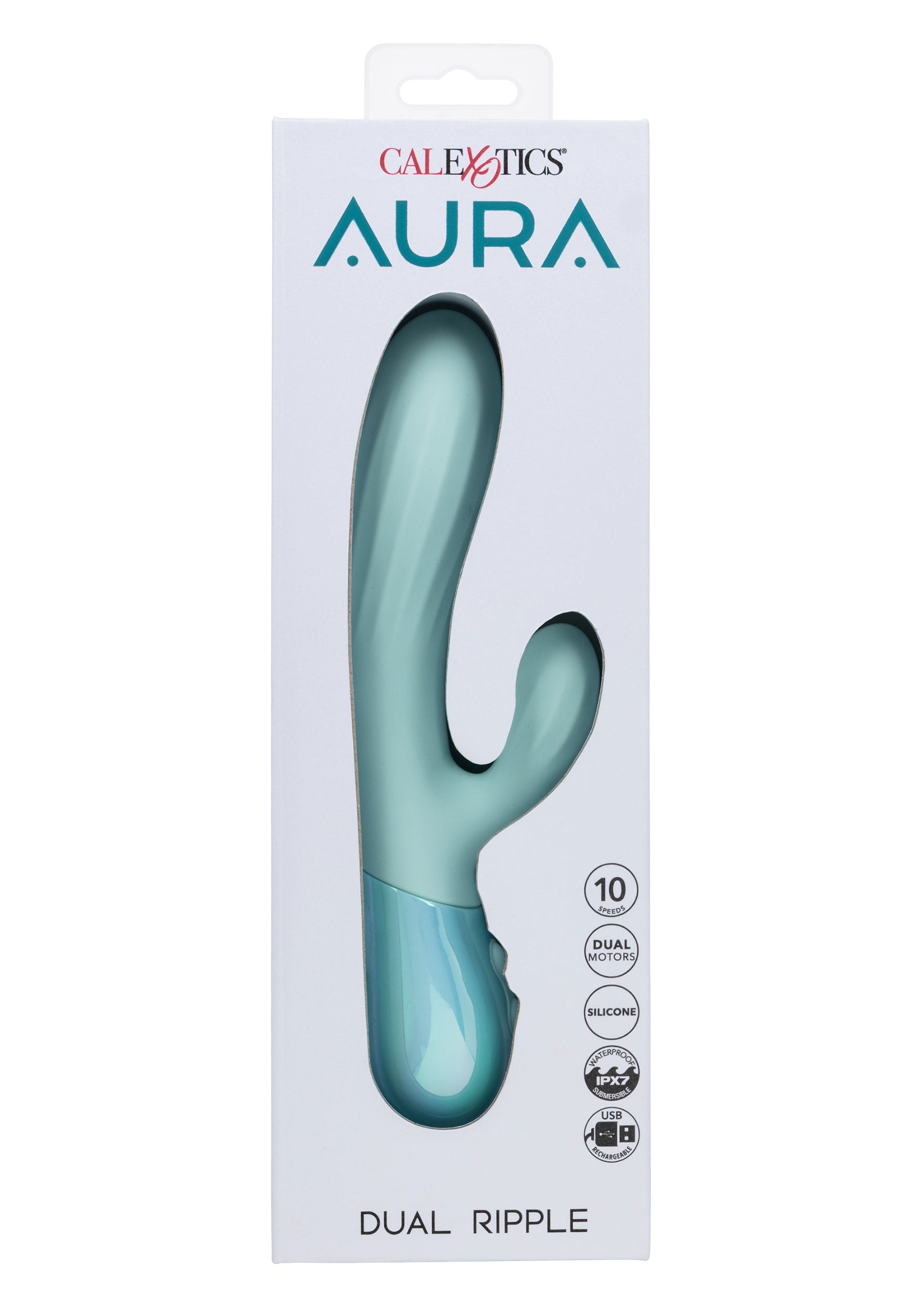 The Aura Dual Ripple is a silicone massager with a rippled shaft and contoured external stimulator. It has 10 vibration speeds and two independent motors, so you can mix and match sensations inside and out. Fully waterproof with an IPX7 rating, it’s great for bath or shower play. A memory chip saves your last setting, and the travel lock keeps it discreet on the go. USB rechargeable in 2 hours, it offers up to 90 minutes of pleasure.