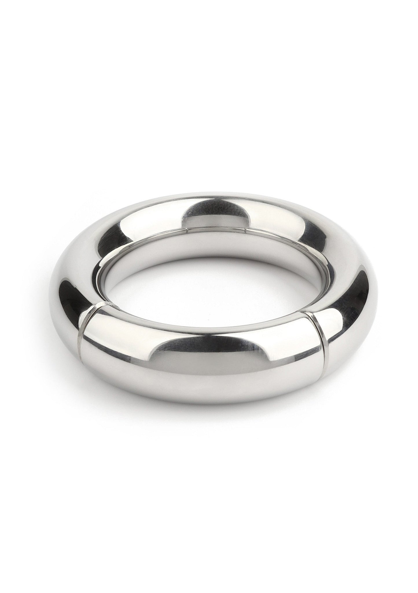 The Mr. Steel Click Klak DoNut C-Ring is a premium stainless steel cock ring with an easy-to-use magnetic closure. Its donut shape provides a comfortable and snug fit, enhancing endurance and stimulation. The seamless design ensures smooth wear, and the high-polished finish adds a sleek touch. Available in various sizes.