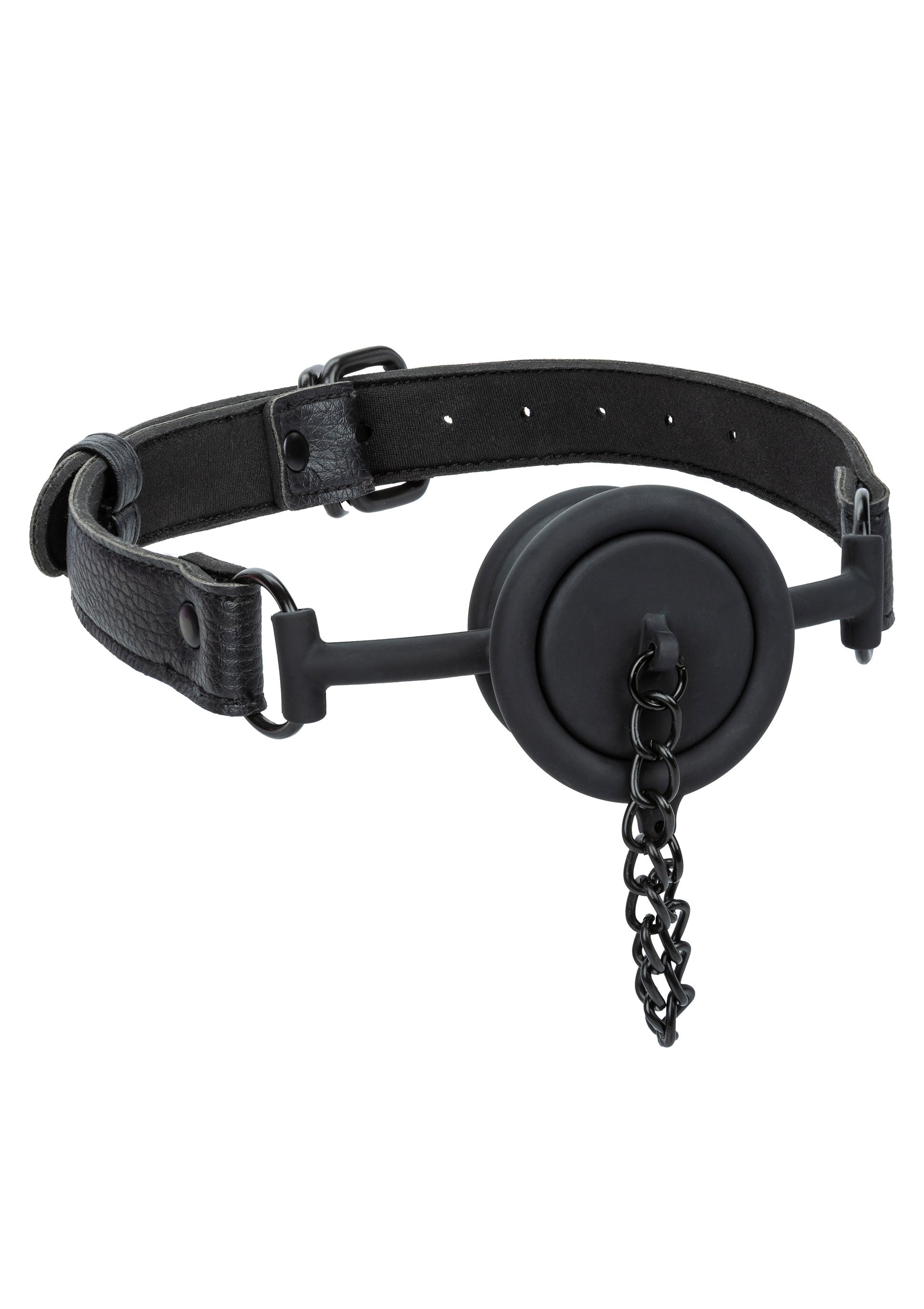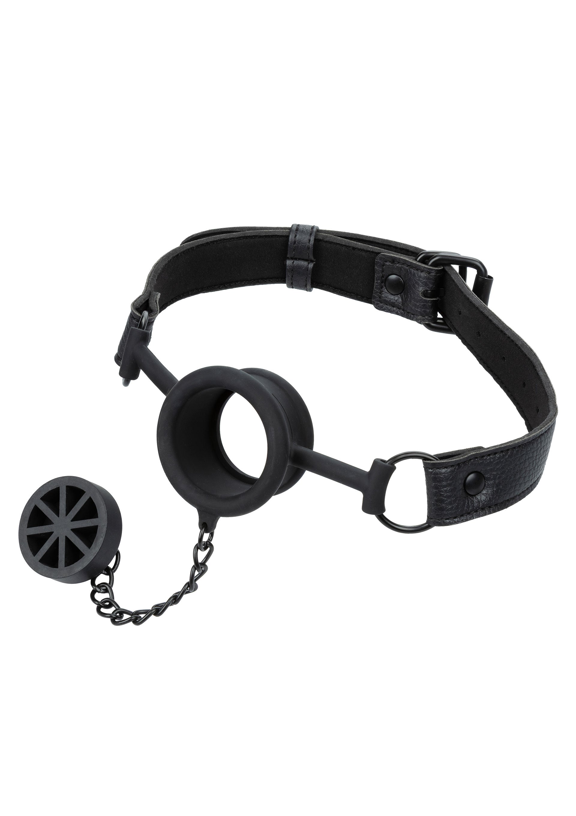 | Material | Silicone (gag) PVC Leather (exterior fabric) Neoprene (lining) Nickel-Free Iron (hardware) |