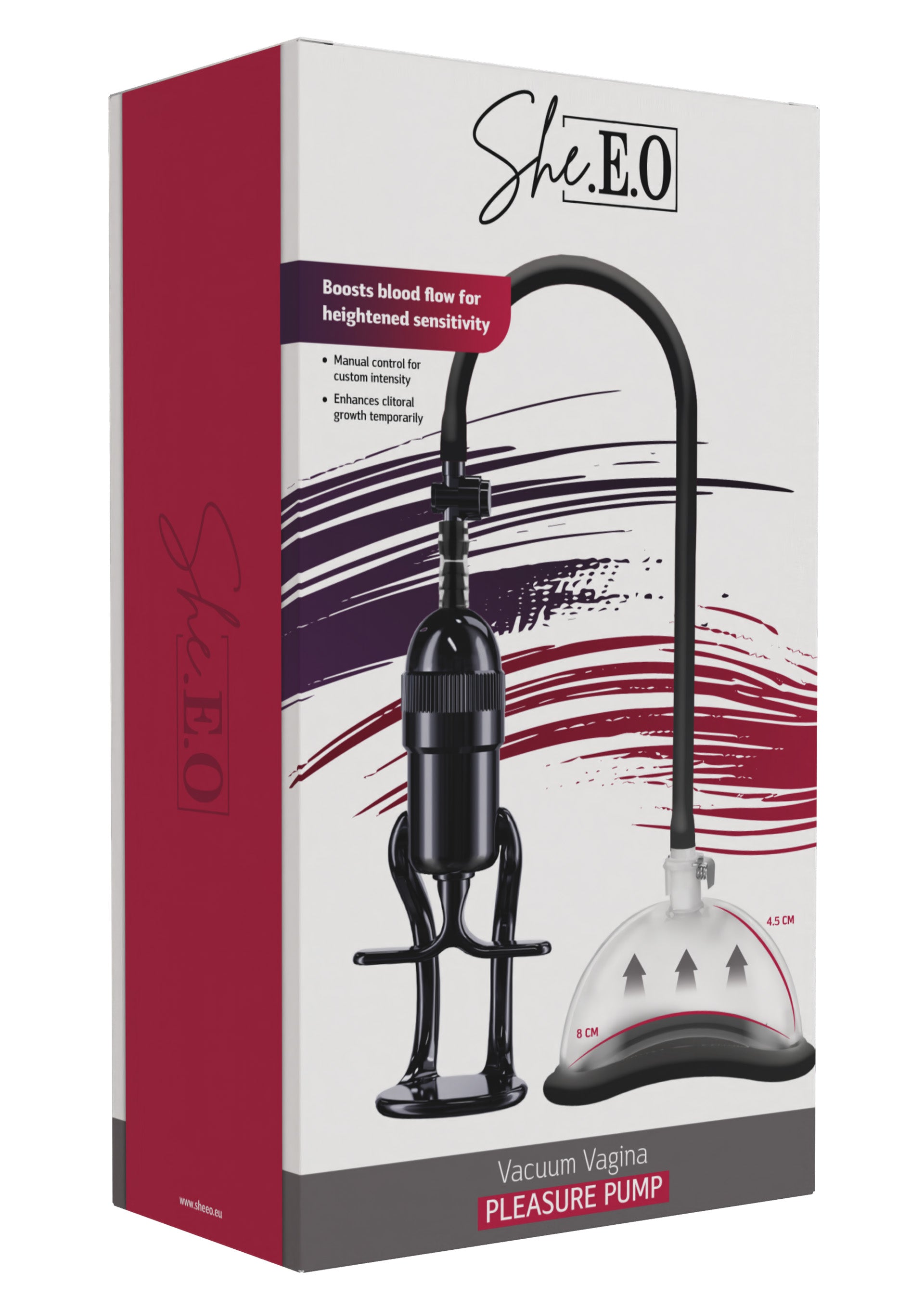 She.E.O presents a sophisticated collection of clitoral, breast, and vagina pumps, crafted for women who dare to embrace ultimate pleasure. The Vacuum Vagina Pleasure Pump is designed to gently increase sensitivity and heighten sensation by creating a vacuum over the vaginal area. Simply place the pump over the vagina and use the hand pump to draw blood flow to the area, making it more responsive and sensitive to touch. The vacuum valve on top of the cylinder keeps the suction steady even after disconnecting the hose and pump. With a quick-release valve for instant pressure relief, you’re in full control of your experience. Explore a deeper level of personal pleasure with the innovative Vacuum Vagina Pleasure Pump by She.E.O.