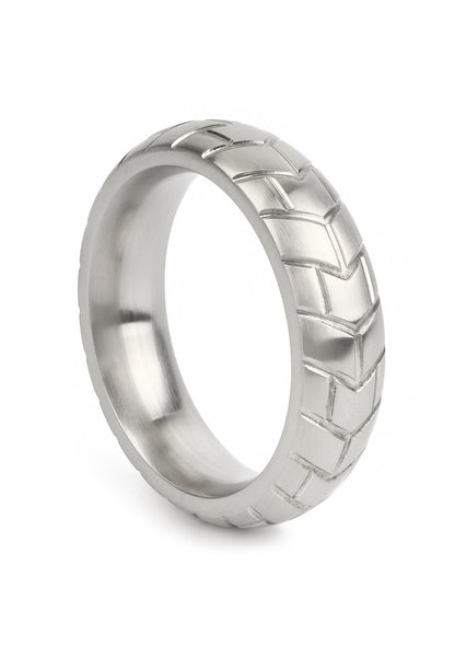 De Mr. Steel MeGa Tire C-Ring Satin is een gedurfde cockring van roestvrij staal met stoer bandenprofiel. De satijnen finish onderstreept de industriële look; het gecontoureerde interieur zorgt voor een comfortabele pasvorm. Ontworpen voor meer uithoudingsvermogen en stimulatie—een unieke touch voor je intieme spel. Verkrijgbaar in meerdere maten.