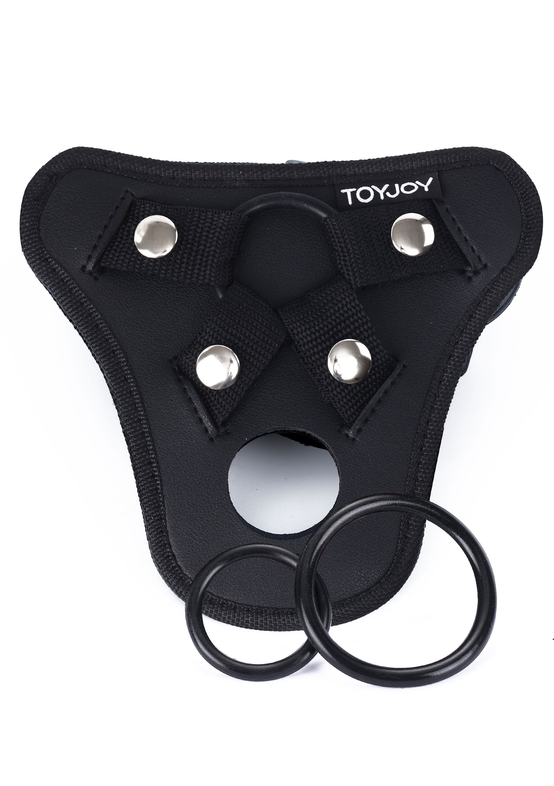 This Strap-On Harness with Pleasure Hole from TOYJOY Get Real is designed for ultimate roleplay pleasure. The high-quality harness features a soft, padded front cushion for a comfortable fit, while the adjustable straps ensure it suits most body sizes. It includes three silicone rings (3.5 cm, 4.5 cm, and 5 cm), allowing you to use your favorite dildo. For added sensation, slip a vibrating bullet (not included) into the pouch on the inside to create an extra vibrating dimension. The strategically placed pleasure hole brings an extra layer of intimacy for both. Get ready for an adventurous strap-on experience with this premium harness.