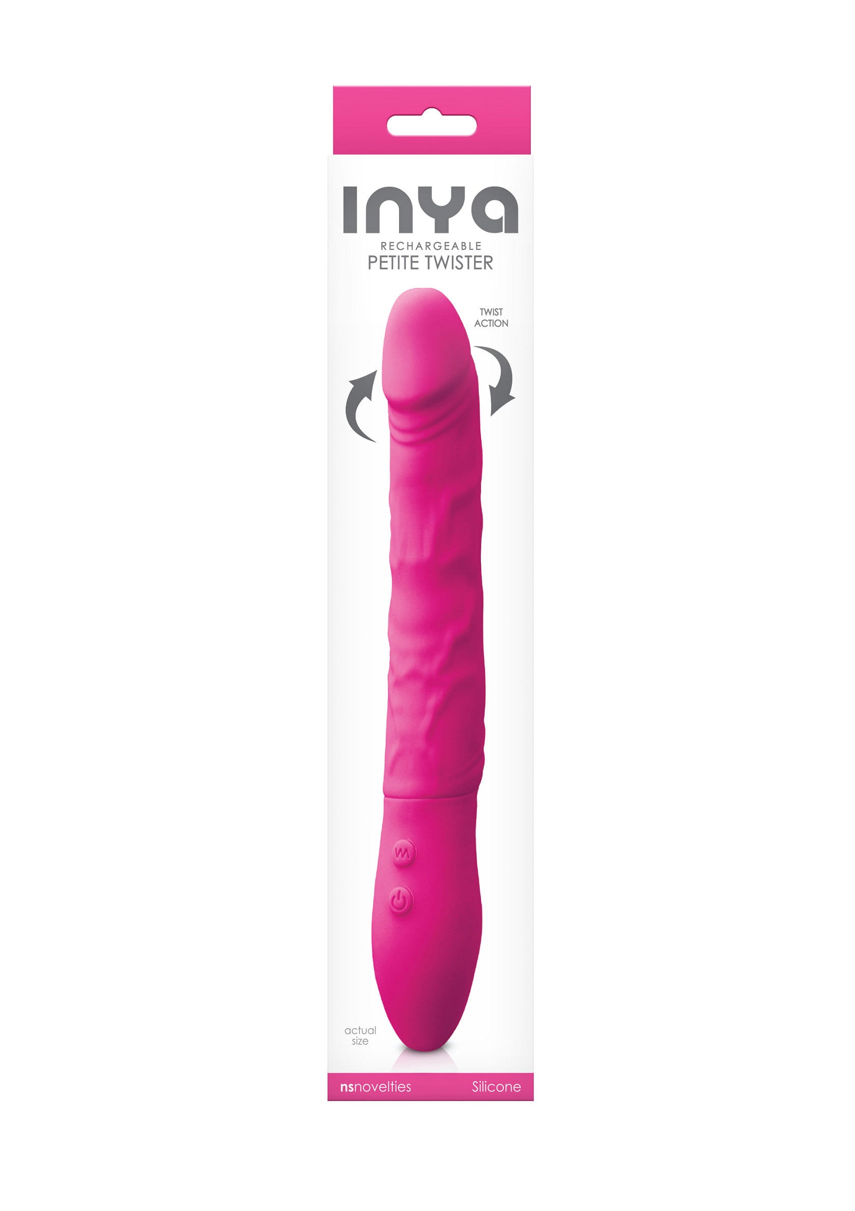 Twister Petite by INYA. A rotating and vibrating, rechargeable silicone massager with adjustable shaft. Seven settings for tailor made excitement. Safe with all lubricants. water resistant