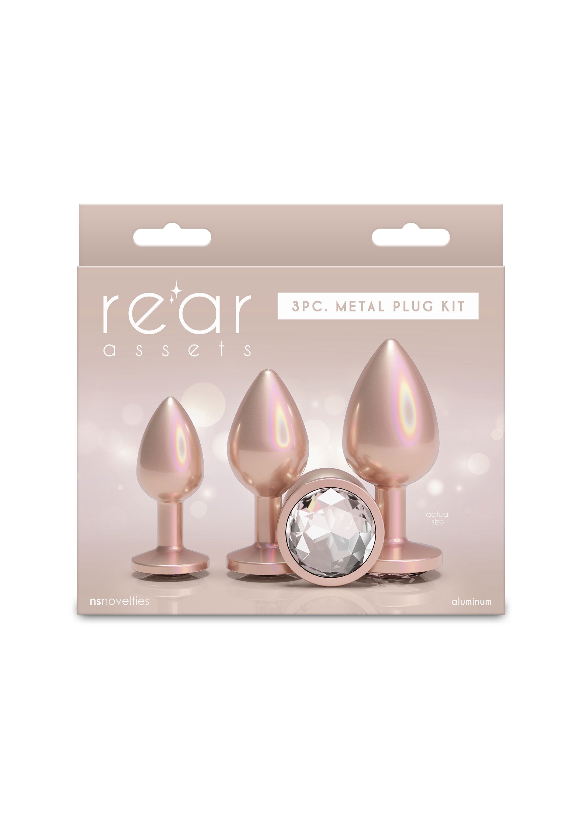 This dazzling trainer kit includes three chrome-plated plugs in graduated sizes, shaped for effortless penetration. Ideal for training solo or with a partner, these are body safe and available in a variety of colors, shapes, and sizes. Suitable with all lubricants.
