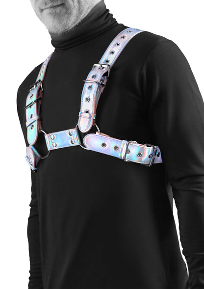 Dress up your assets with Cosmo’s stylish chest harness. Accented with silver nickel-free hardware and adjustable straps for the perfect fit. Made from easy to clean vinyl. Cosmo harnesses are available in a variety of styles and sizes.