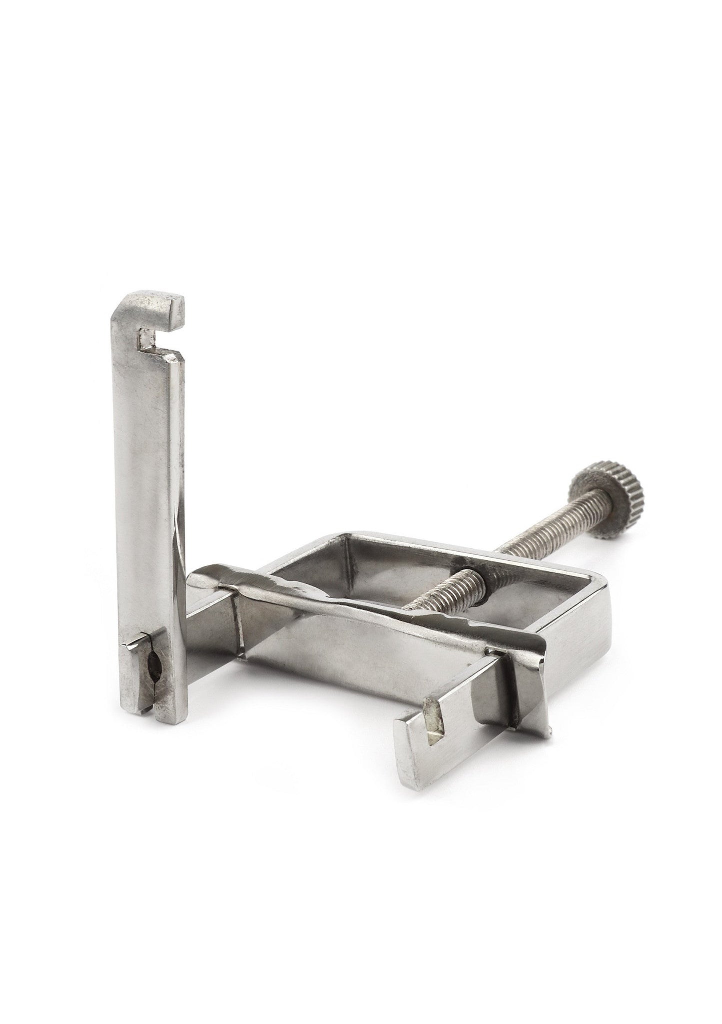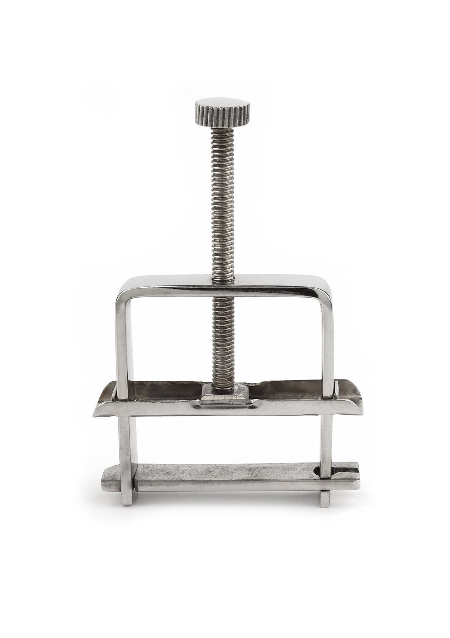 The Mr. Steel Nipple Vise is a high-quality stainless steel compression tool for intense nipple play. Its adjustable screw mechanism allows precise pressure control, enhancing sensitivity and restraint. The smooth, polished edges ensure comfort while maintaining a firm grip. Designed for those who enjoy endurance play, it offers a unique combination of stimulation and control. Always monitor circulation and remove if discomfort occurs. Clean thoroughly before and after use.