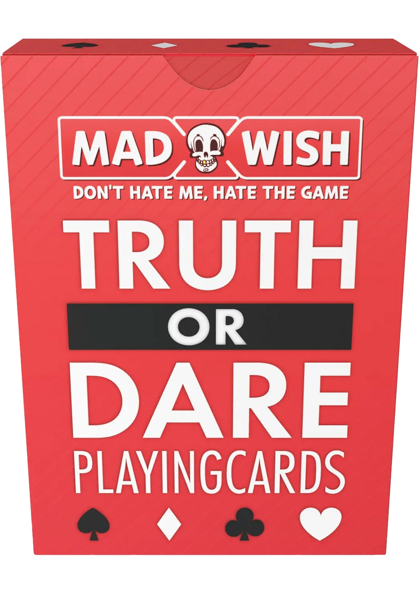 The MadWish Playing Cards are perfect for any party! This display contains 24 sets of the thrilling Truth or Dare card game, with each set featuring 56 unique cards. Each card presents daring challenges, funny questions, and group activities, ensuring endless fun for everyone. Compact and easy to carry, these cards will spice up any gathering.