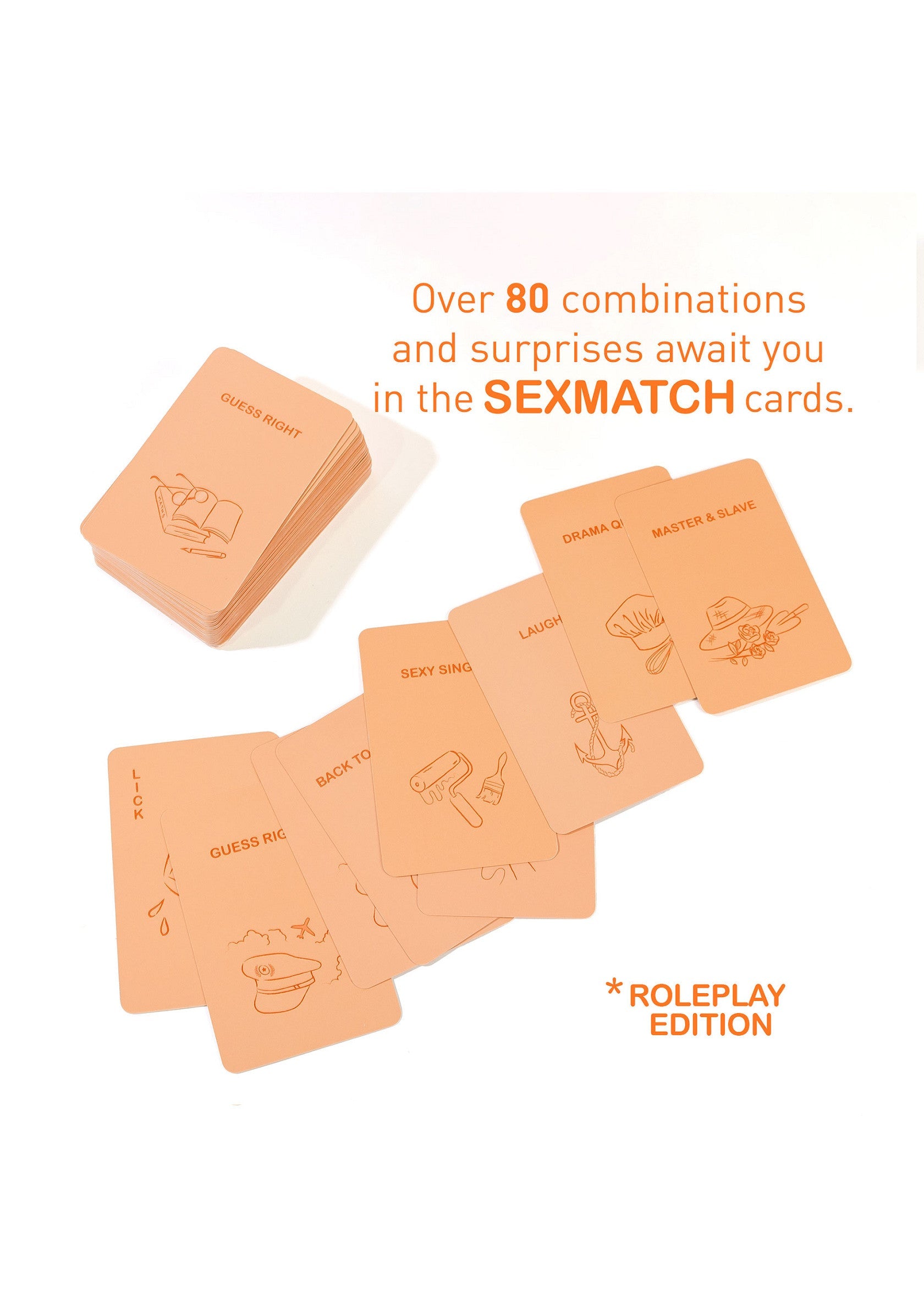 Sexmatch Roleplay Edition is a fun and intimate card game for couples. Match illustrations and words while completing exciting challenges. The first player to run out of cards wins sexy rewards! The set includes 89 playing cards (81 game cards + 8 jokers) and 1 guide card. Explore various roleplays during the game, and the winner chooses which roleplay to act out with their partner. Add excitement to your nights with Sexmatch Roleplay Edition and enjoy unforgettable, playful moments with your partner.
