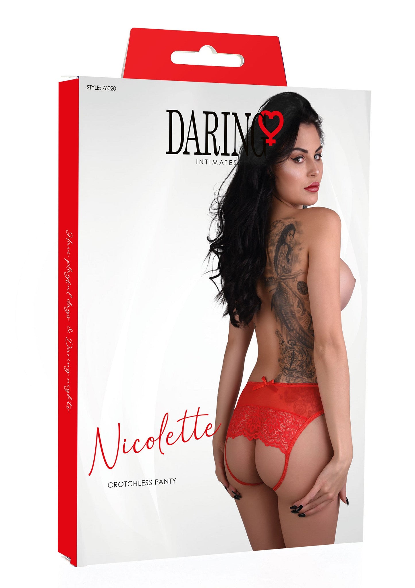 Nicolette crotchless panty. Lovable strappy open back panty with eyelash lace and mesh.