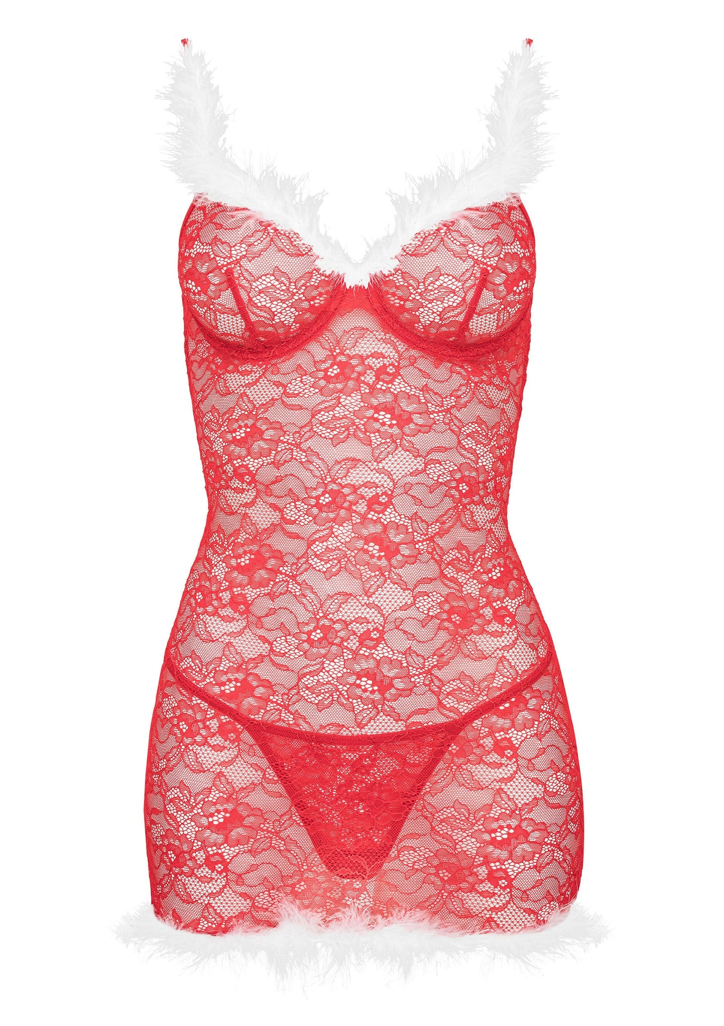 In passionate red, this babydoll is perfect not only for romantic evenings but also as a sensual way to express your emotions. The adjustable straps ensure a personalized fit, while the tailored red thong completes the seductive set. Delicate feather trim adds the finishing touch, giving the babydoll that extra special something for unforgettable moments.
