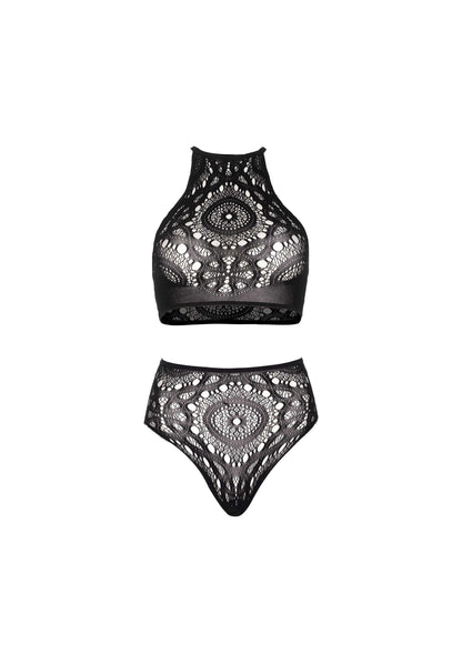 2 Piece Crochet lace halter crop top with a strappy back detail and matching high waist string.